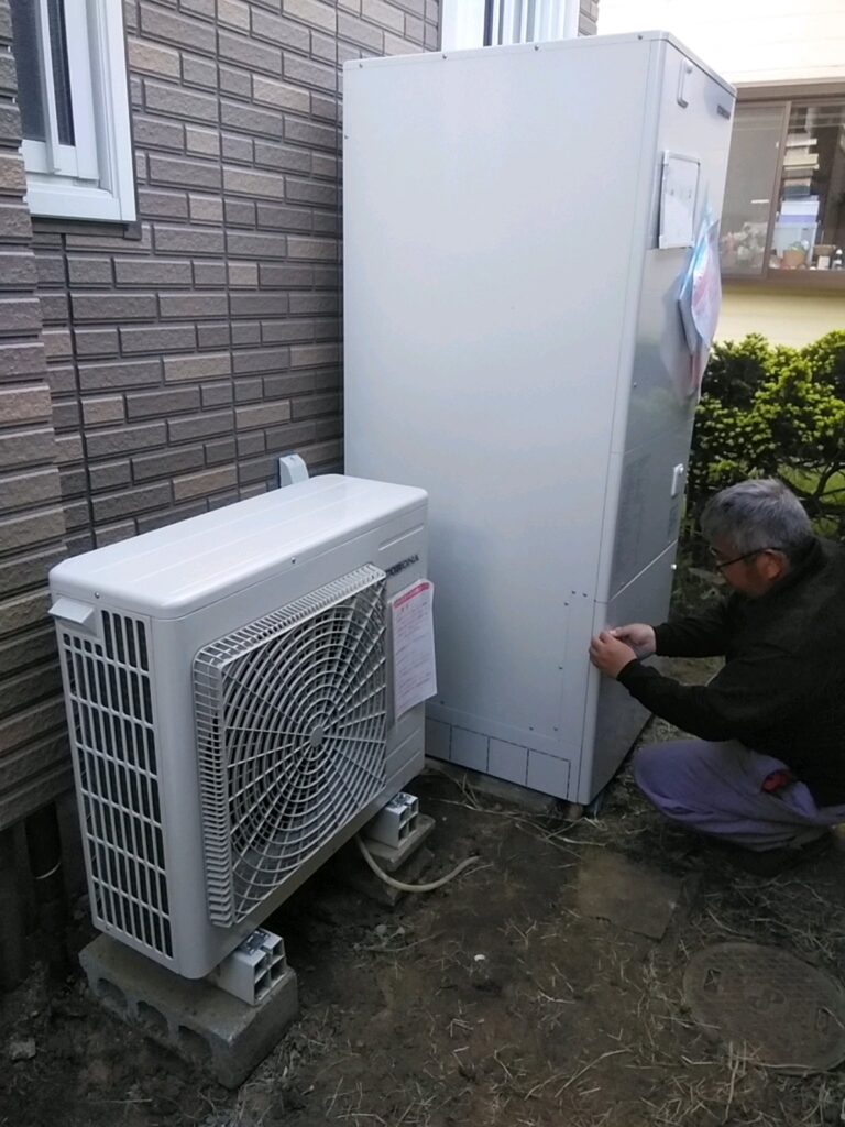 つくば市 北条の新町で コロナのエコキュートの 交換をいたしました。今までは 積水ハウスの ユーリッチが付いてましたので 同寸法の コロナCHP-AZ1を 取り付けしました。このコロナのエコキュートは 太陽光パネルと 連携可能ですので つくば市の2026年度の 補助金 をもらうことが可能のタイプです。