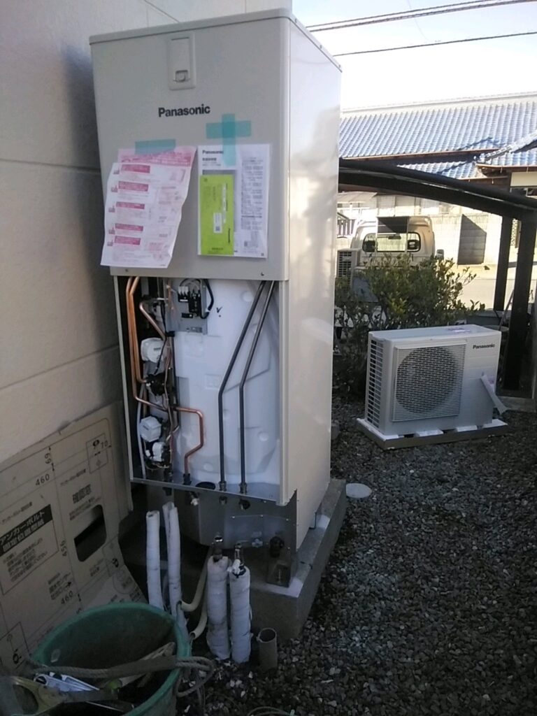 つくば市 学園南のお隣の原での エコキュート取り換え交換の画像です。寒い一日でした。パナソニックHE-S37LQSフルオートは 高機能モデルに匹敵するコストパフォーマンス有る 素晴らしいエコキュートです。
