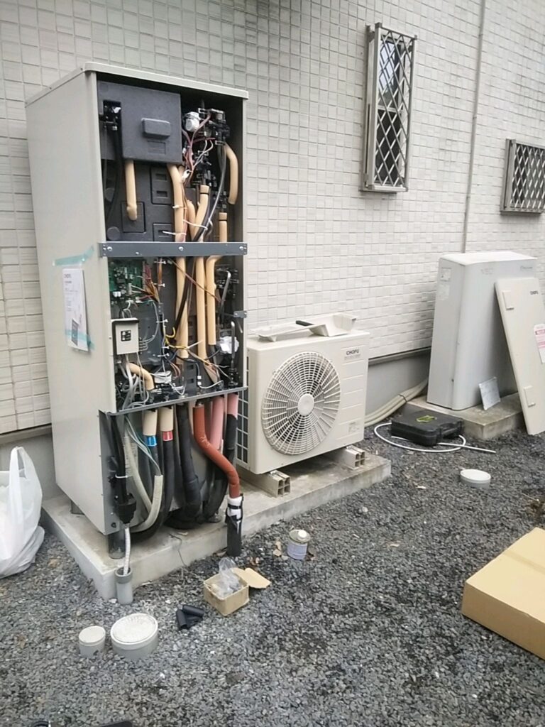 つくば市 平沢で お日様エコキュートの施工です。