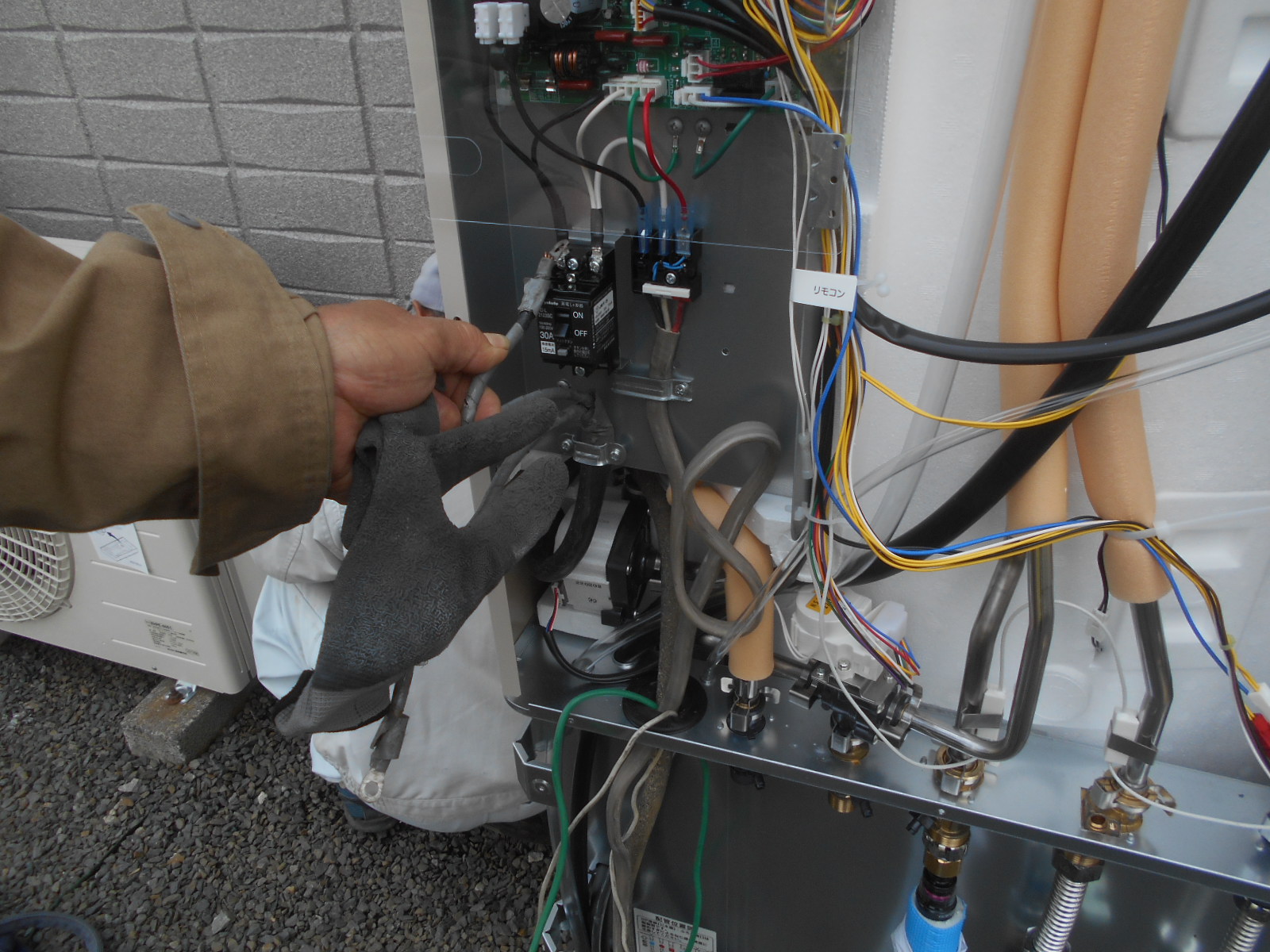 今回の施工取り付の画像は つくば市平沢での作業です。長府の460リットル大型エコキュートEHP-4605BXをノーリツ石油給湯器からの交換です。据え付けのコンクリートベースの強度確認に ヒートポンプ駆動の200ボルトの電源工事も 同時に行いました。石油給湯器からエコキュートにすることになりまして 灯油の給油および石油切れの心配から解放されたと、評価されました ありがとうございました。