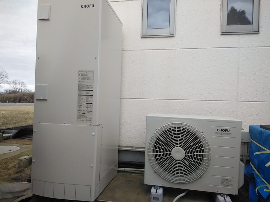 本日は 風が強い一日でした。赤城颪冷たく体も底冷えする感覚でした。今までのダイキン製エコキュートが 不調で 長府のエコキュートに交換いたしました。今まではヒートポンプが普通のブロックに乗せてあるだけでしたので 頑丈なスライドコンクリート仕様の重量ある製品に改善しました。
