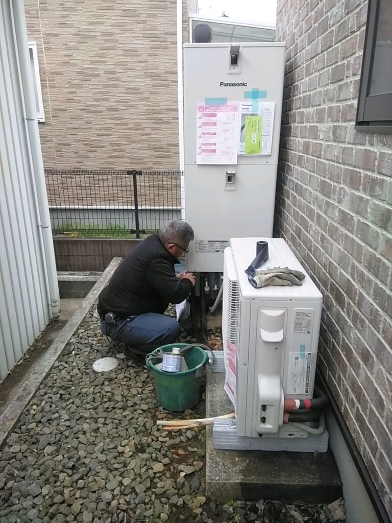 土浦市 中高津クラフト造成分譲エリアの ウッドーノートで パナソニックエコキュートの 交換での画像です。